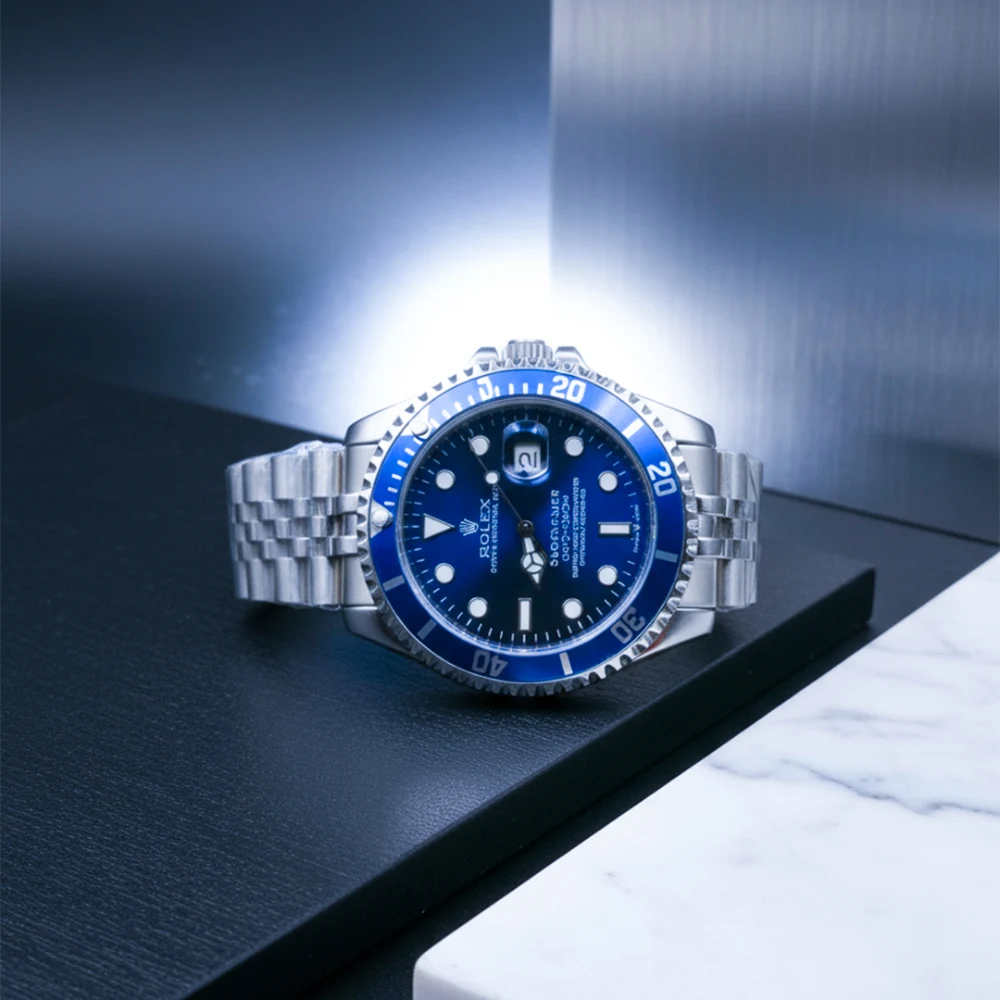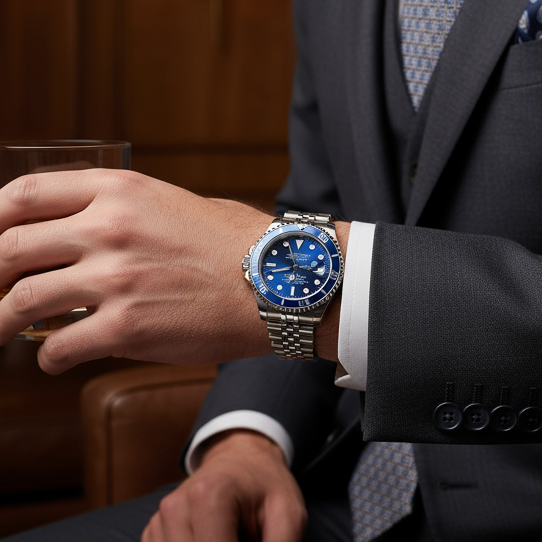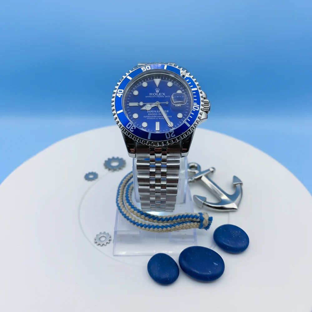 - Design: Elegant blue bezel with detailed minute indicators