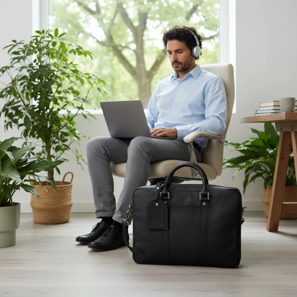 Its structured silhouette, reinforced handles, and polished metal hardware add a luxurious touch, while the spacious compartments ensure you stay organized throughout the day. With its classic yet modern design, this laptop bag is the ideal companion for executives, entrepreneurs, and anyone who demands both style and performance.
