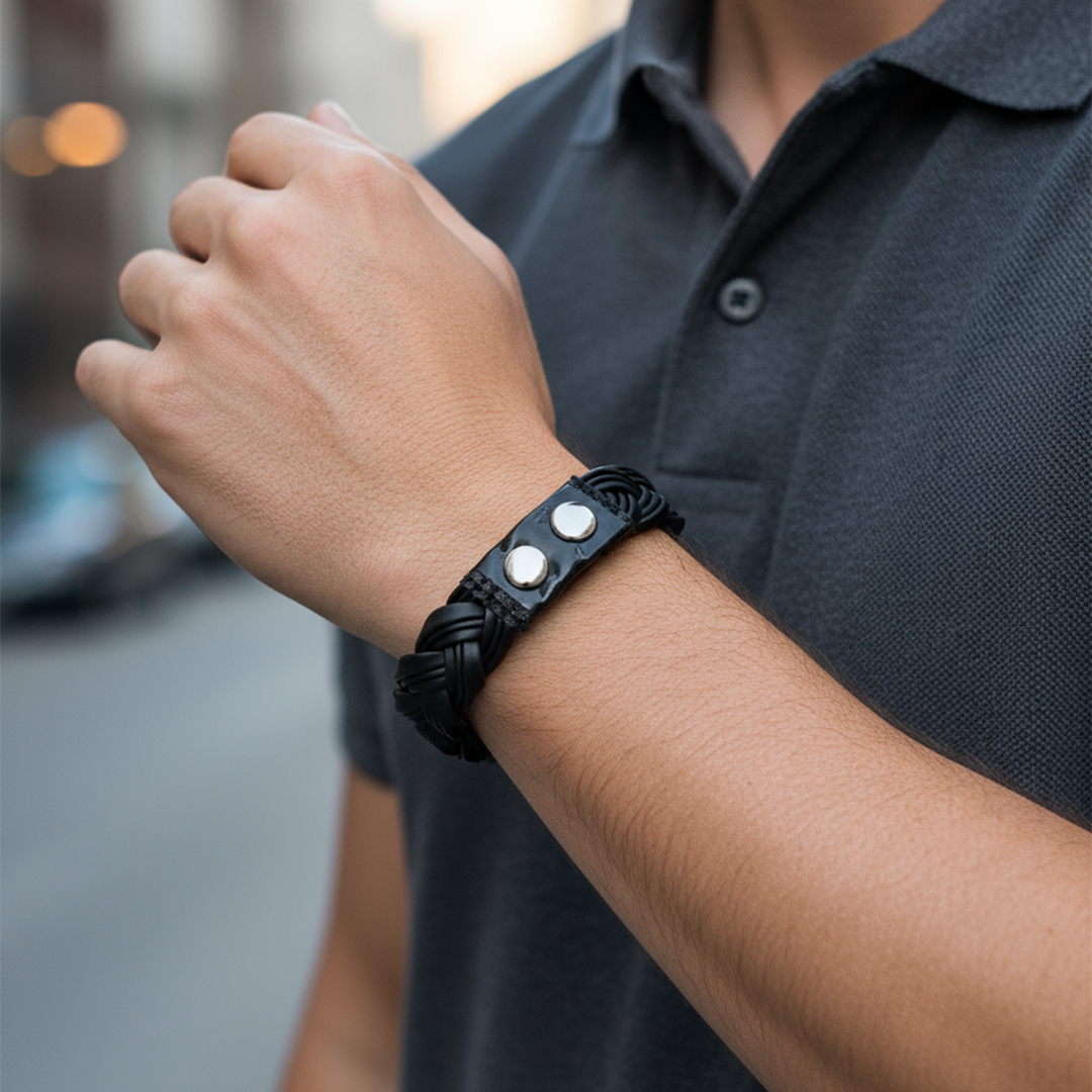 The Stags Noir Braid Bracelet is a symbol of timeless masculinity and modern style. Crafted from premium braided leather, this bracelet is designed to complement any outfit — from casual streetwear to formal attire. Its sleek black tone and intricate weave pattern exude elegance, while the durable clasp ensures a comfortable and secure fit. Perfect for men who appreciate subtle luxury and everyday sophistication.